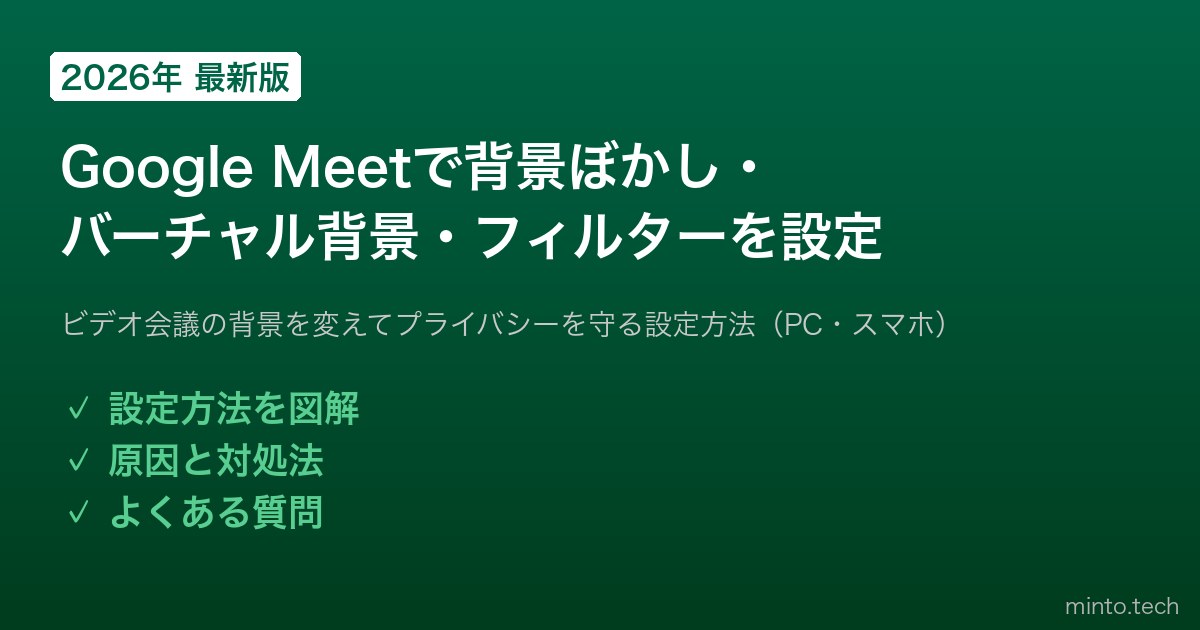 【2026年最新版】Google Meetで背景ぼかし・バーチャル背景・フィルターを設定する方法【完全ガイド】