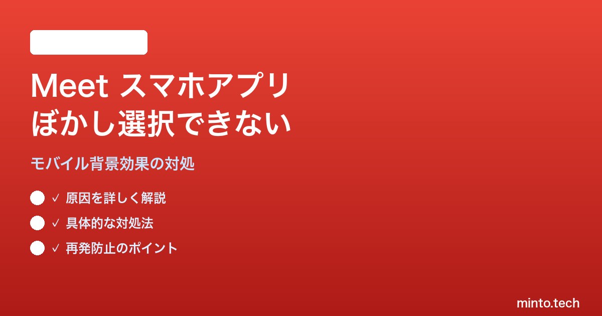【2026年最新版】Google MeetのスマートフォンアプリでぼかしやエフェクトSeppuが選択できない対処法【完全ガイド】
