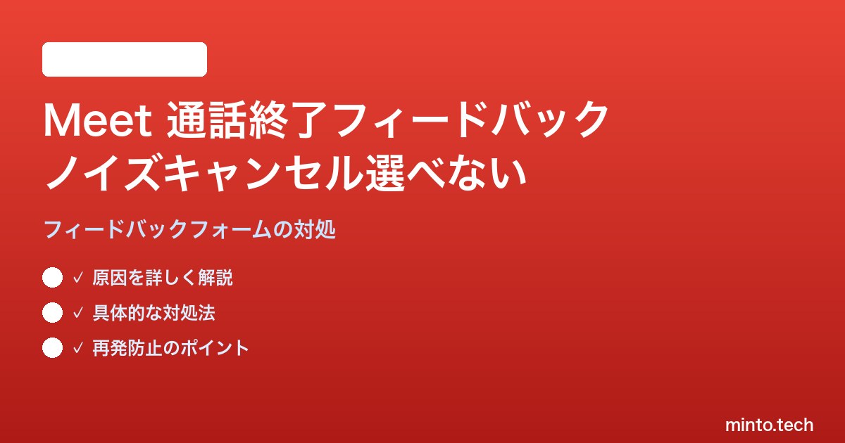 【2026年最新版】Google Meet通話終了時のフィードバックでノイズキャンセル評価が選択できない対処法【完全ガイド】