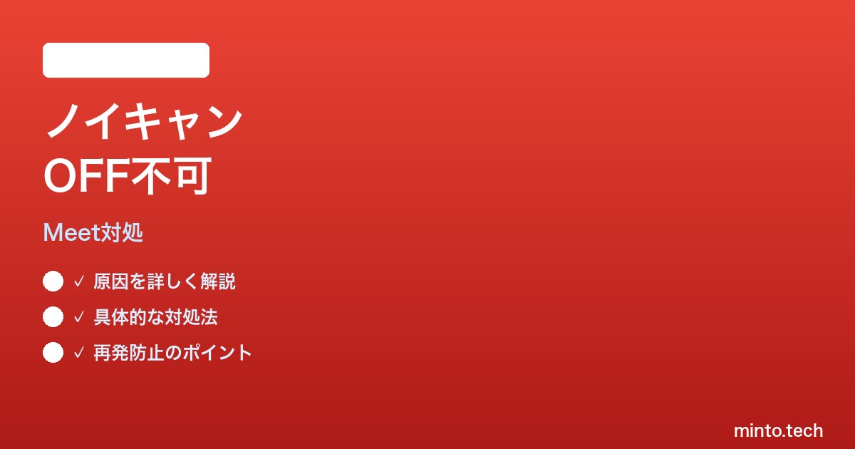 Google MeetのノイズキャンセリングをOFFにできない問題は、2025年仕様変更で「OFF項目の場所が変わった」「音楽モードが新設された」「組織管理者制御が強化された」という3つの背景が複合しています。多くの場合は手順1の「Web版設定>音声>ノイズキャンセリング>OFF」で即座に解決しますが、それでも戻る場合はキャッシュクリアや組織ポリシー確認が必要です。