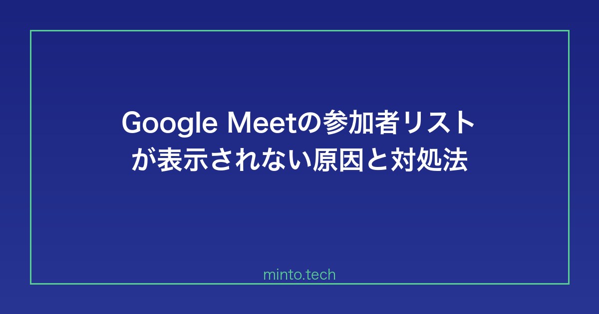 Google Meetで「参加者を表示」を選択しても参加者リストが表示されない、または参加者数は表示されているのに名前が見えないという問題の原因と解決方法を解説します。