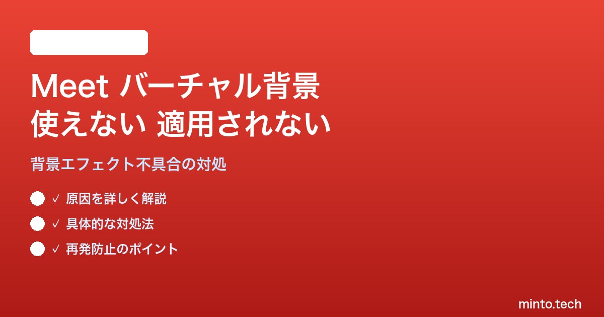 Home / Google / 【2026年最新版】Google Meetのバーチャル背景・背景ぼかしが使えない・適用されない対処法【完全ガイド】