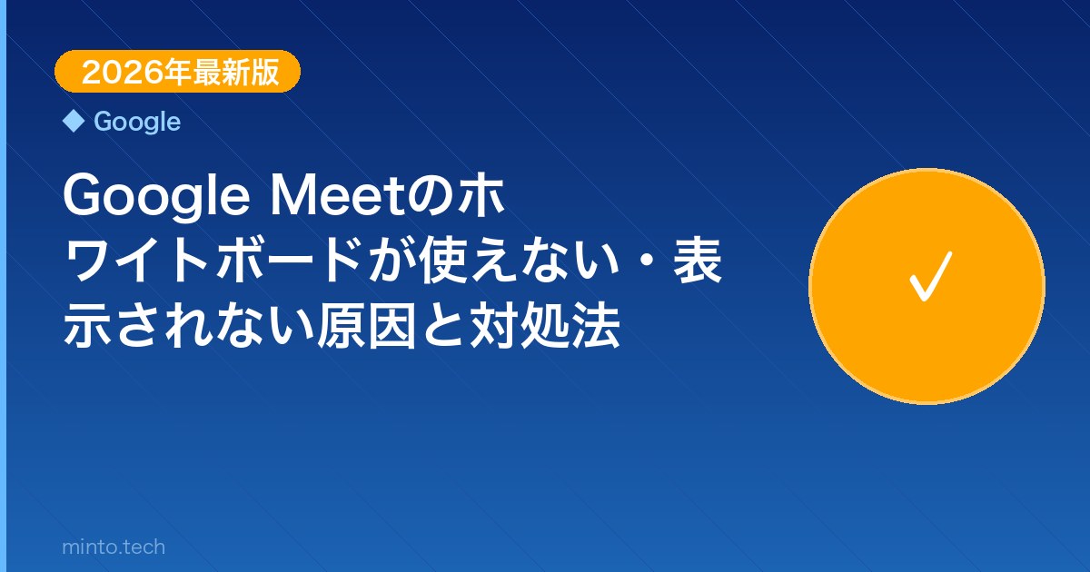 Home / Google / 【2026年最新版】Google Meetのホワイトボードが使えない・表示されない原因と対処法【完全ガイド】