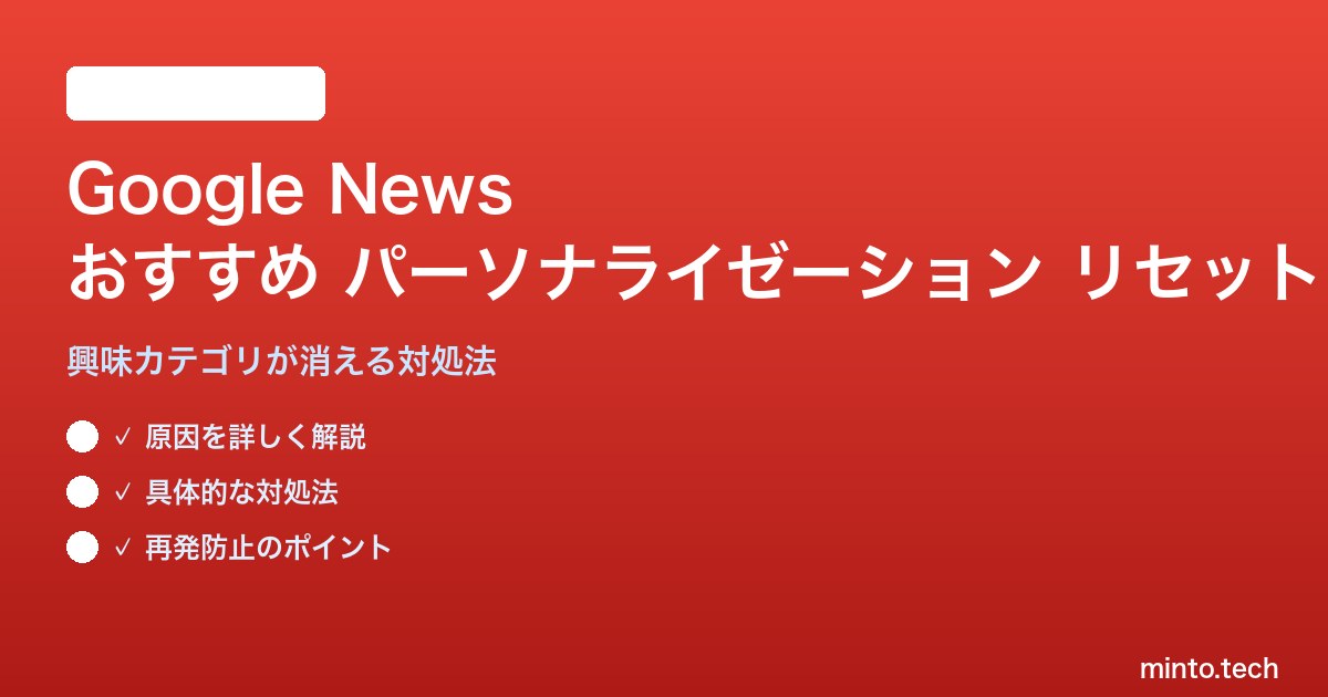 Google Newsのパーソナライゼーションがリセットされる主な原因と対処法をまとめます。