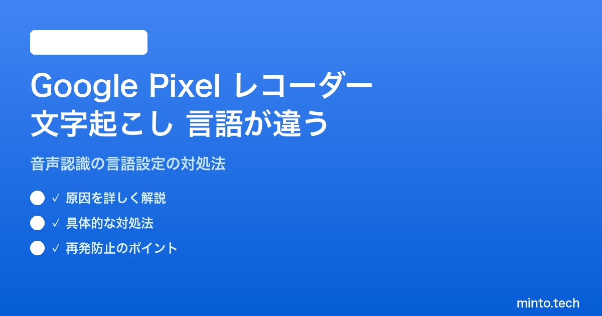 Google Pixelのレコーダーアプリで文字起こしの言語が正しく認識されない問題は、ほとんどの場合、以下の手順で解決できます。