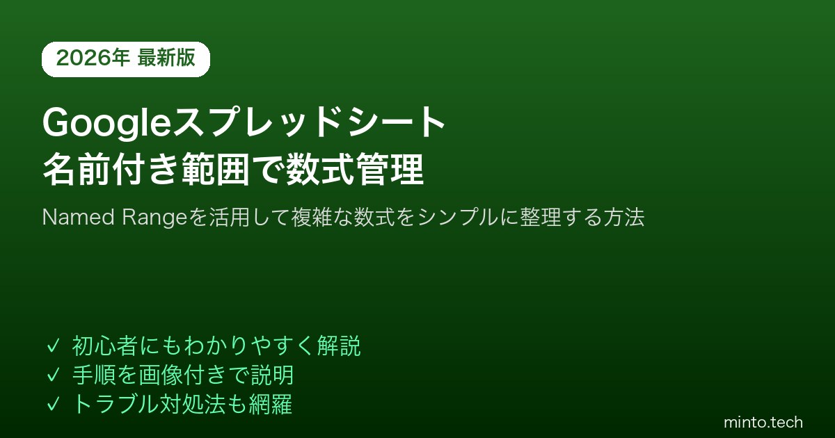 Home / Google / 【2026年最新版】Googleスプレッドシートの名前付き範囲(Named Range)で数式を管理しやすくする方法【完全ガイド】