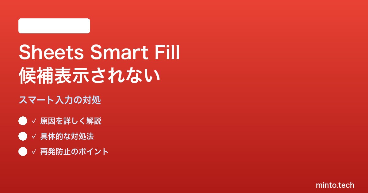 Home / Google / 【2026年最新版】Google SheetsのSmart Fill(スマート入力)候補が出てこない対処法【完全ガイド】