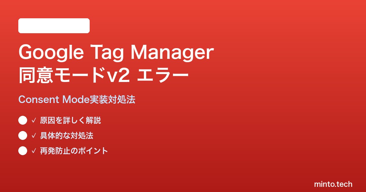 Google Tag Manager 同意モードv2の実装エラーの多くは、初期化順序の問題とv2新パラメータの追加漏れが原因です。本記事のポイントをまとめます。