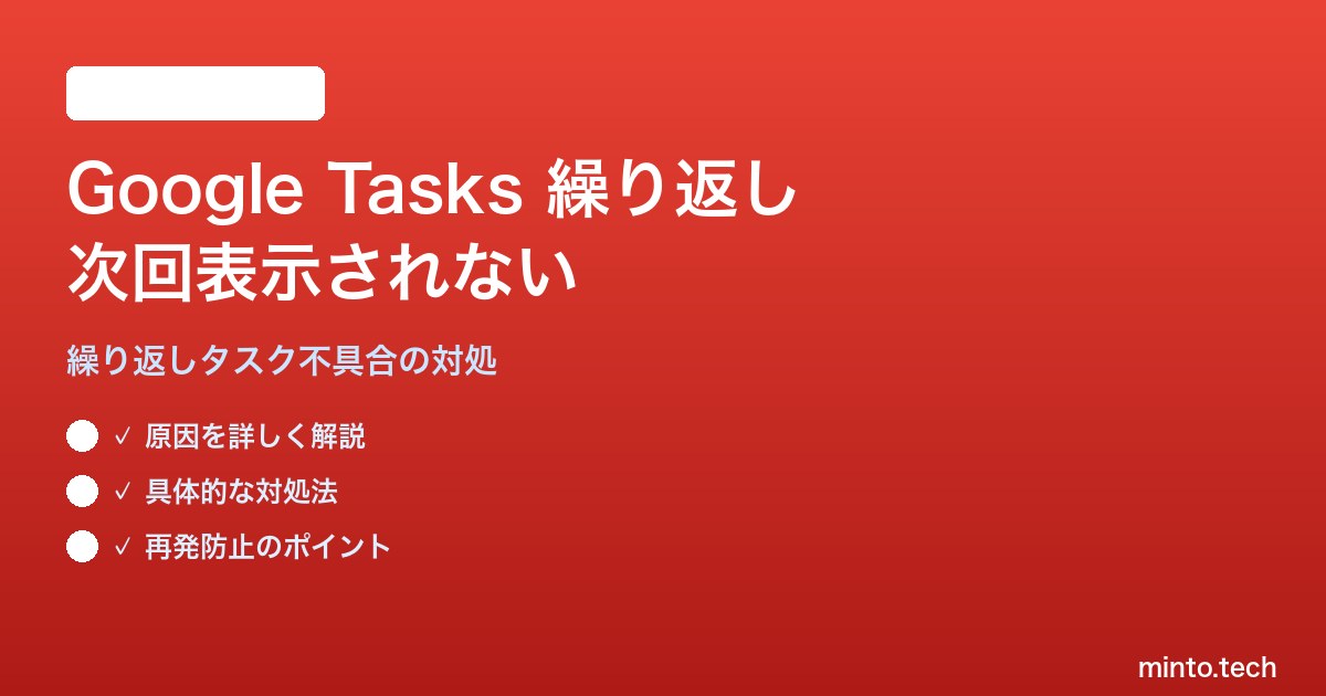 Home / Google / 【2026年最新版】Google Tasksの繰り返しタスクを完了しても次回が表示されない対処法【完全ガイド】