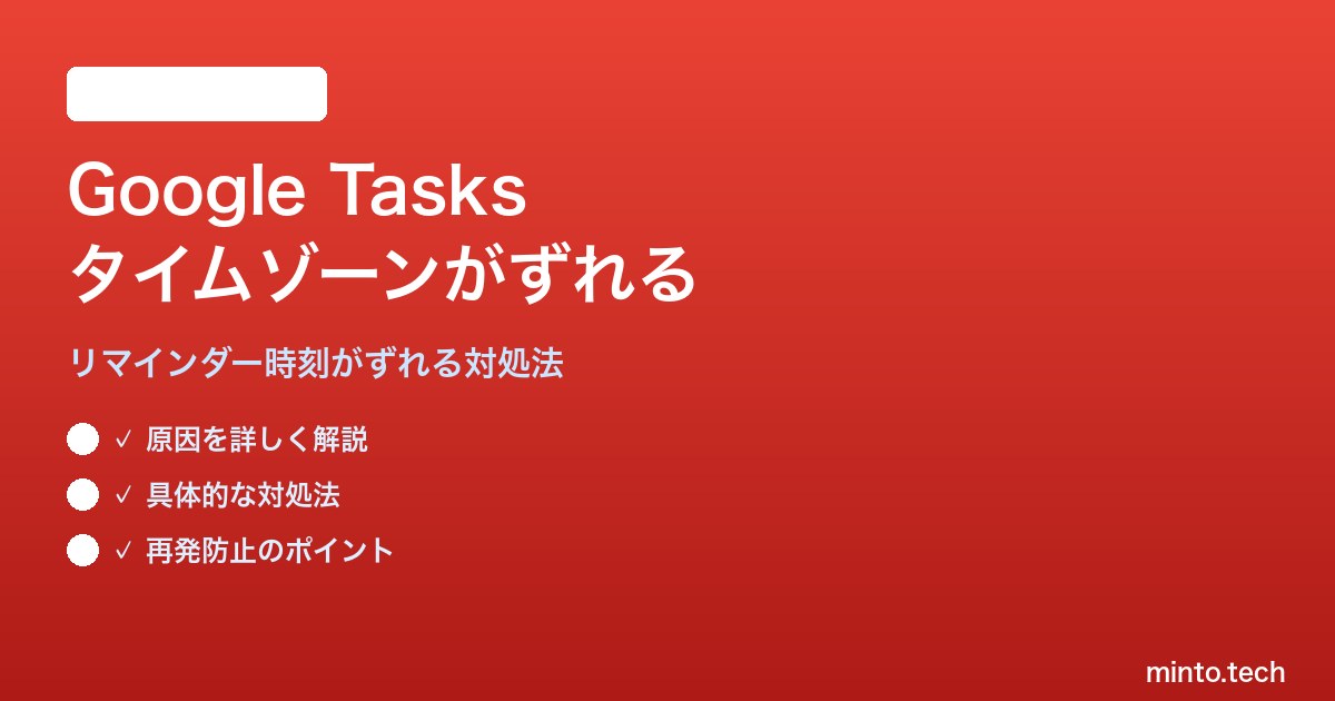 Google Tasksのリマインダー時刻がタイムゾーン違いで表示される問題は、主にGoogle Calendarのタイムゾーン設定とデバイスのOSタイムゾーン設定の不一致が原因です。