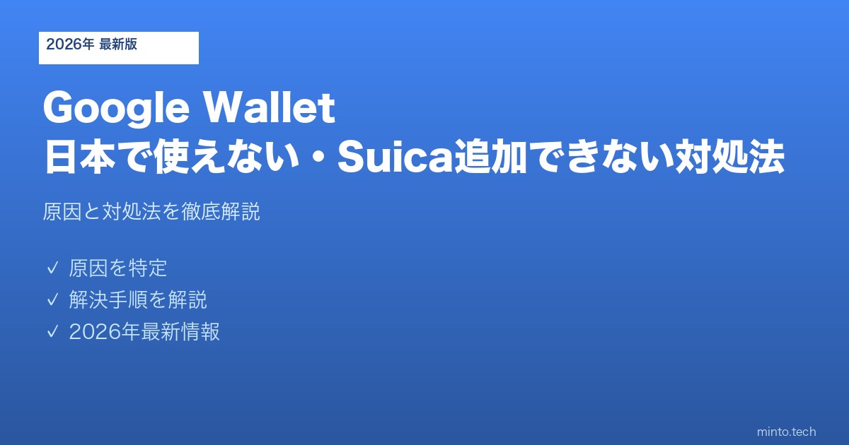 【2026年最新版】Google Walletが日本で使えない・Suicaが追加できない原因と対処法【完全ガイド】