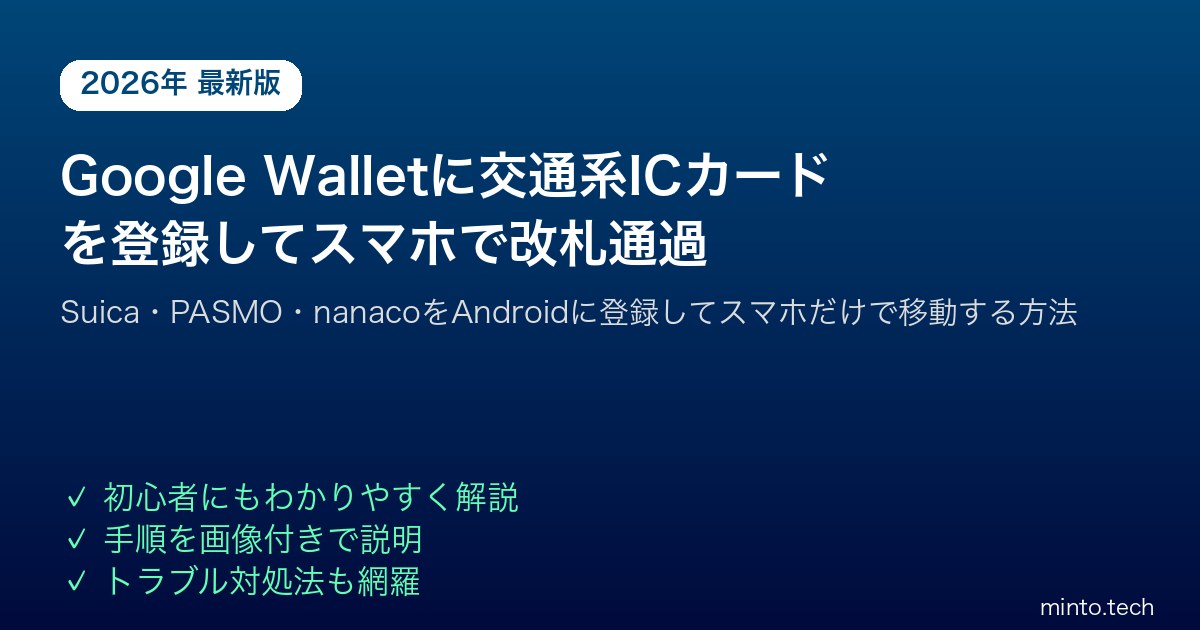 【2026年最新版】Google WalletにSuica・PASMO・nanacoを登録してスマホで改札を通る方法【完全ガイド】