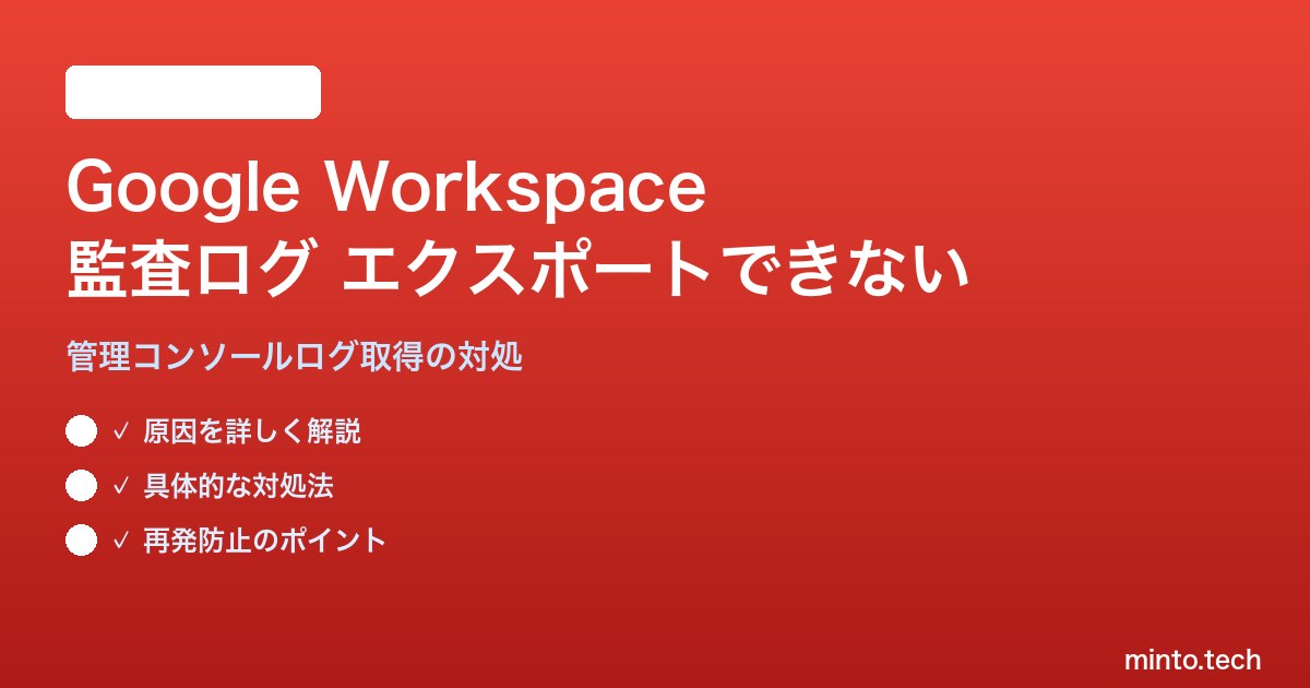 【2026年最新版】Google Workspace管理コンソールの監査ログがエクスポートできない・取得できない対処法【完全ガイド】