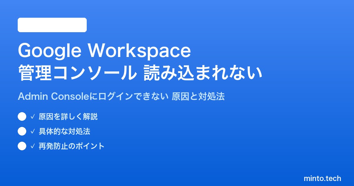 「admin.google.comを開いてもページが読み込まれない」「管理コンソールにログインできない」「二要素認証の画面から先に進めない」——Google Workspaceを管理する立場の方が最も困る問題のひとつです。