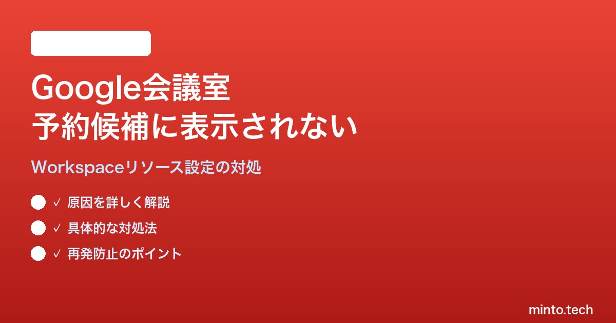 【2026年最新版】Google Workspace会議室・設備がカレンダー予約候補に表示されない対処法【完全ガイド】