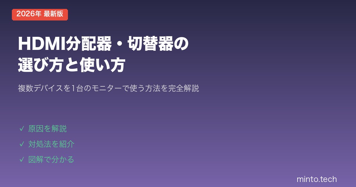- 分配器・切替器のHDMI規格を確認 — HDMI 1.4の製品では4K@60Hzは出力できません。HDMI 2.0以上の製品を使いましょう。