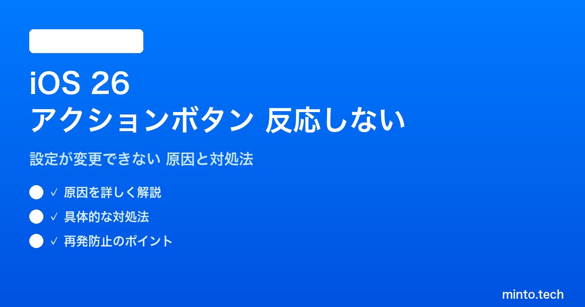 この記事では、iOS 26でアクションボタンが反応しない原因をすべて洗い出し、初心者でもわかるように具体的な対処法をステップ形式で丁寧に解説します。