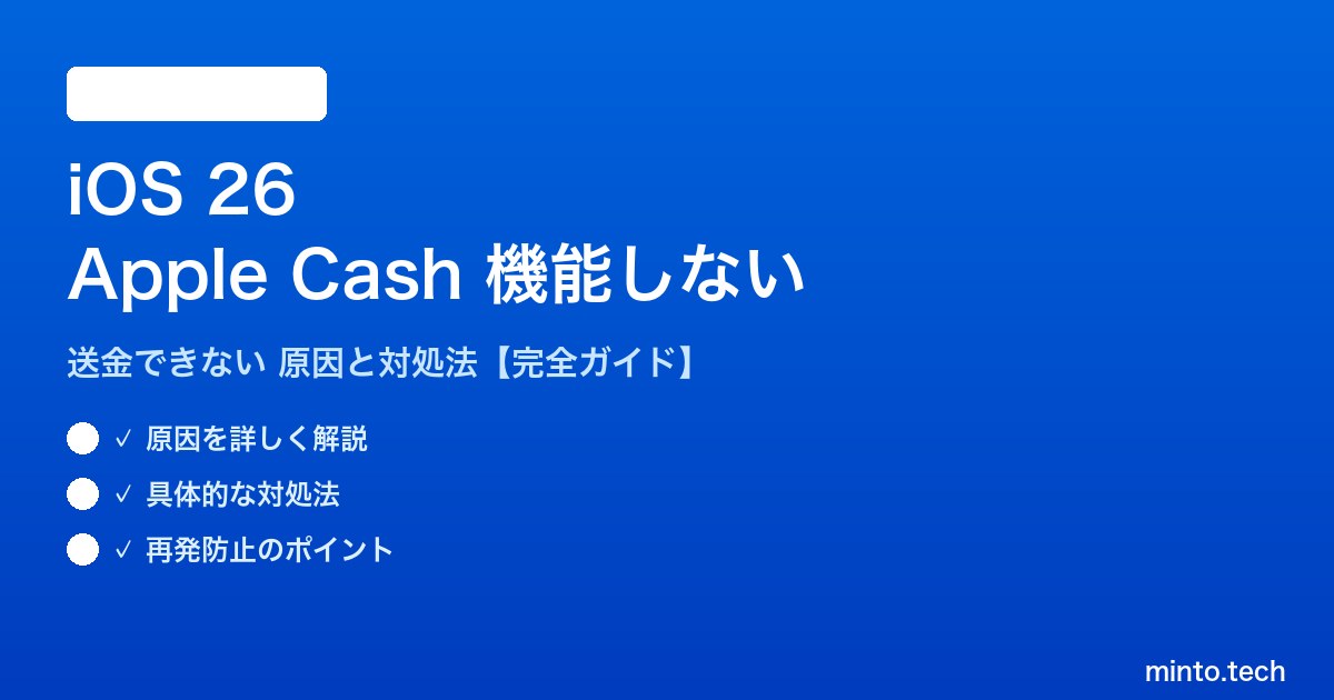 iOS 26でApple Cashが使えない問題の原因と対処法をまとめました。