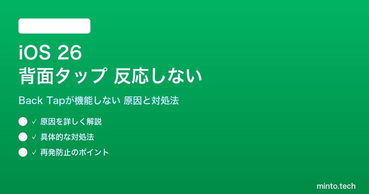 iOS 26でBack Tap(背面タップ)が機能しない場合の主な対処法をまとめます。