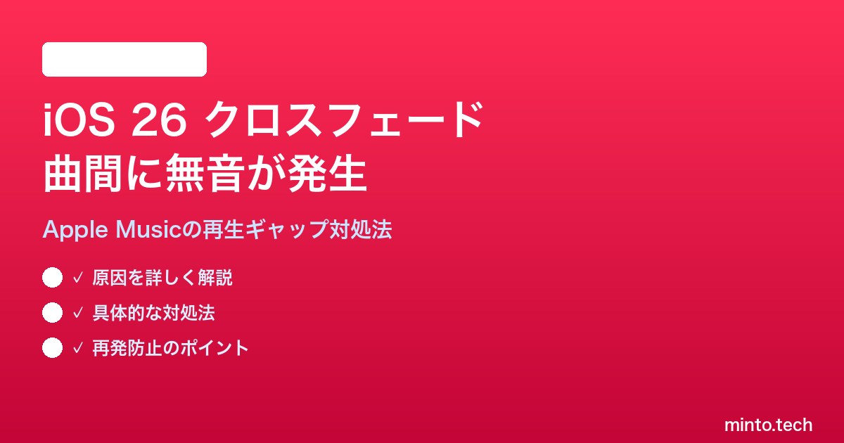 Apple Musicのクロスフェード機能を有効にしているのに、曲と曲の間に無音・ギャップが発生してしまう——そんな経験はありませんか?iOS 26にアップデートしてから特に顕著になったという報告が増えています。