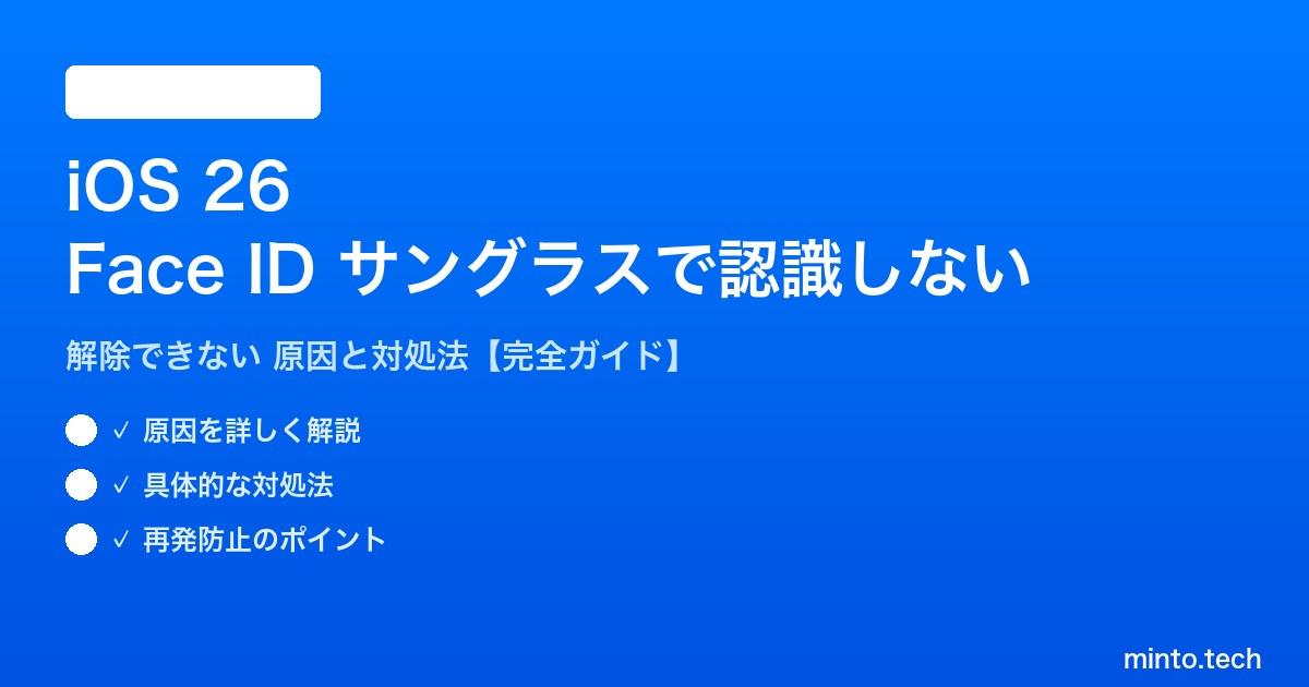 iOS 26でサングラス着用時にFace IDが認識しない問題は、主に以下の3つが原因です: