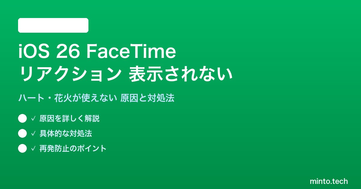 iOS 26のFaceTimeリアクションが表示されない問題は、以下のポイントを確認することで解決できます。