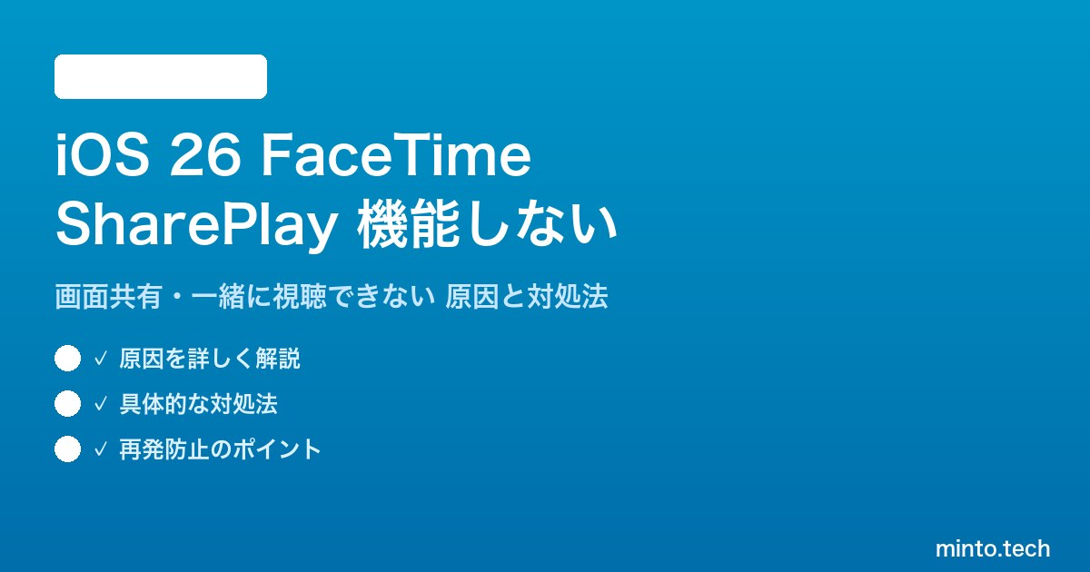 iOS 26のFaceTimeでSharePlayが機能しない場合は、以下を順番に試してください。