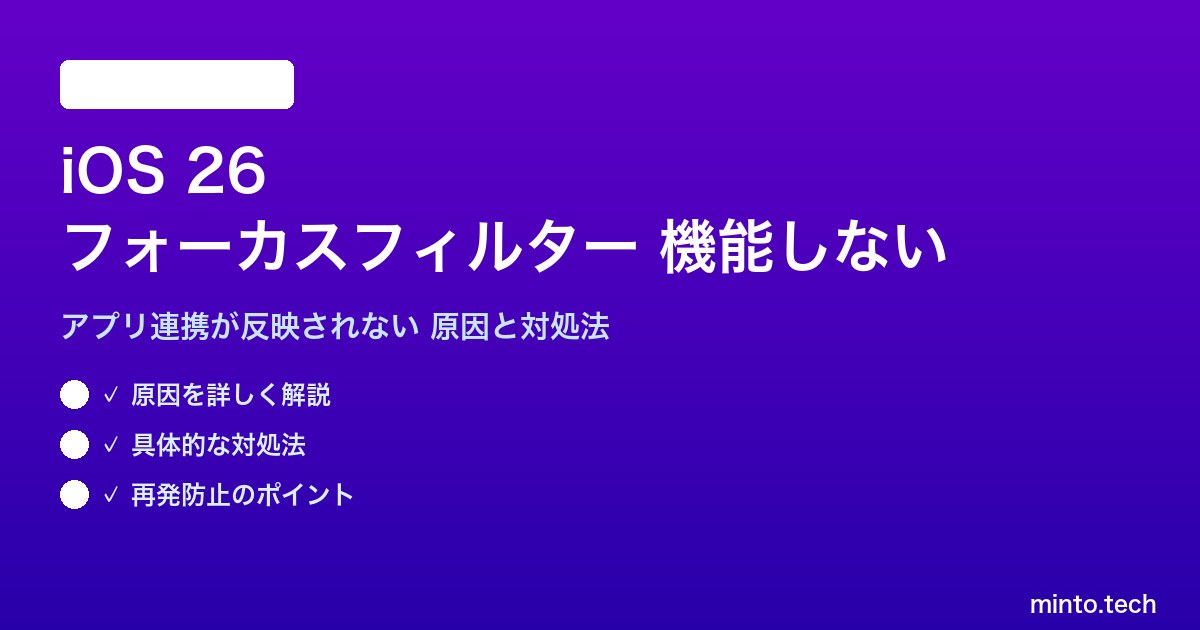 この記事では、iOS 26のフォーカスフィルターが機能しない原因を体系的に解説し、状況に応じた対処法を詳しく紹介します。