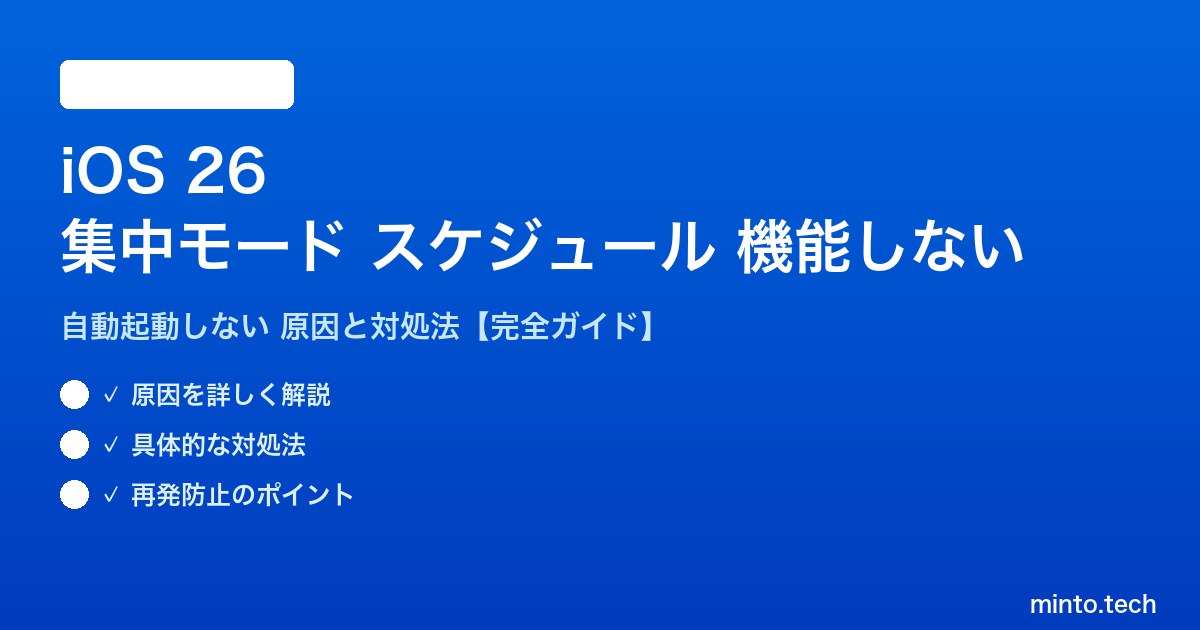 iOS 26の集中モードのスケジュール(自動起動)が機能しない問題は、多くの場合以下の原因によるものです。