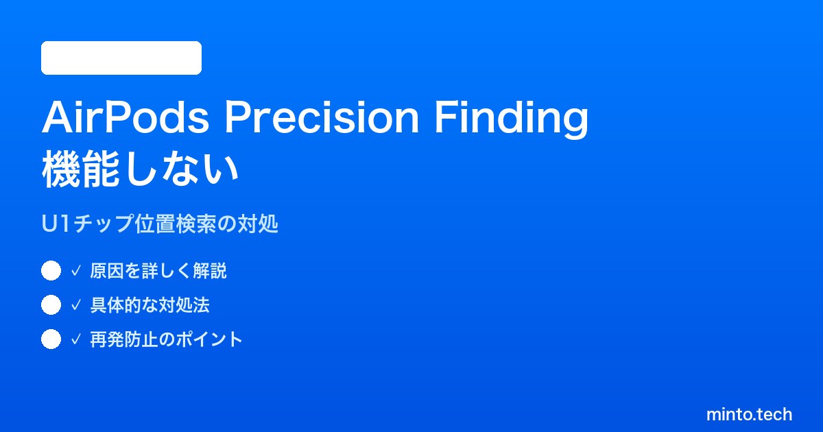原因は単純なBluetoothの不調ではなく、対応モデルの条件、iOSバージョン、AirPodsのファームウェア、UWBの利用許可、そしてケース内の電池残量など、複数の要素が絡んでいます。本記事ではPrecision Findingが機能しない代表的な原因と、ひとつずつ確実に切り分けていくための対処法を、初心者の方にも分かるよう丁寧に解説します。