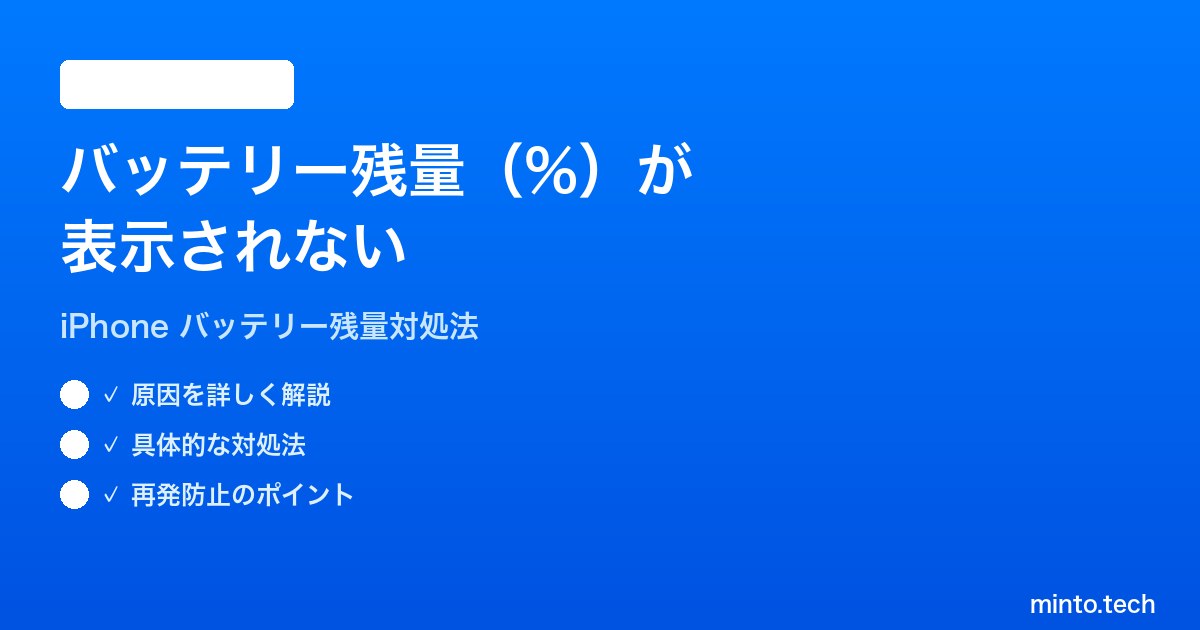 最もよくある原因です。設定アプリの「バッテリー」メニュー内に「バッテリー残量(%)」というトグルがあり、これがオフになっているとステータスバーに数字が表示されません。iOS アップデート後に設定がリセットされることがあります。