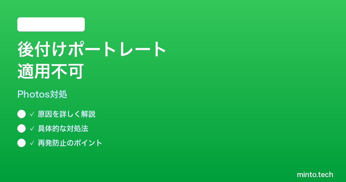 この記事では、後付けポートレートが反映されない原因をすべて整理し、具体的な対処手順、対応機種の見極め方、再撮影が必要なシーンの判別方法まで丁寧に解説します。