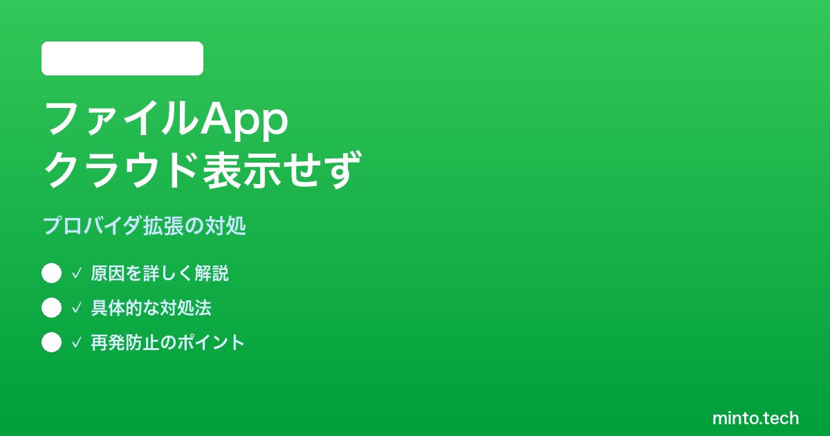 サードパーティクラウドがファイルアプリに表示されない原因はいくつかあり、症状によって対処法が異なります。まずは原因を切り分けましょう。