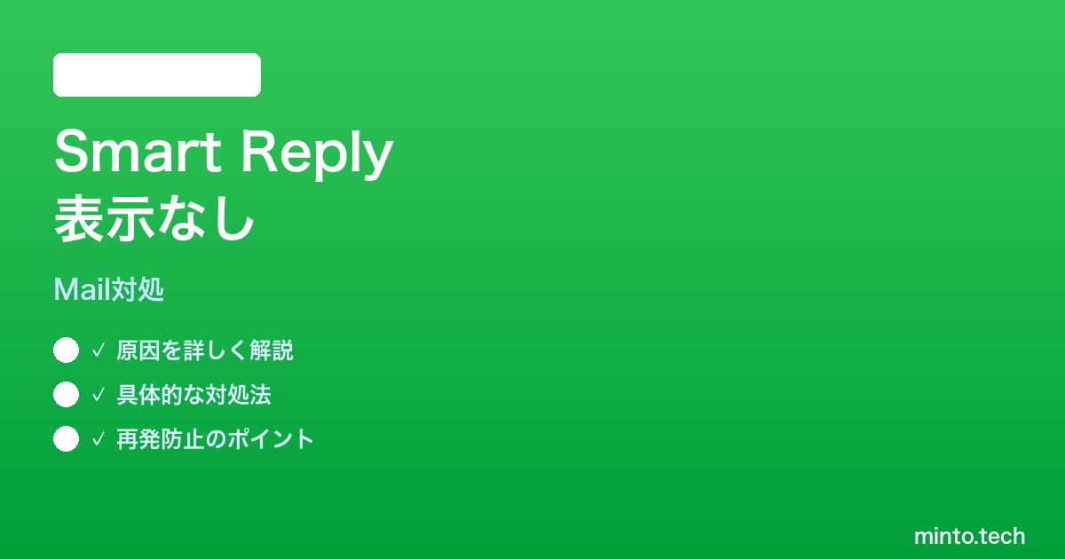 これらの基本条件をクリアしているのに表示されない場合は、メールアカウントの種類(Gmail/iCloud/独自ドメインIMAPなど)が対応しているか確認し、必要に応じてアカウントの再ログインを行ってください。それでも改善しない場合は、ストレージ容量を10GB以上確保した上でiPhoneを再起動することで、機械学習モデルが正しく再構築され、Smart Replyが復活することが大半です。