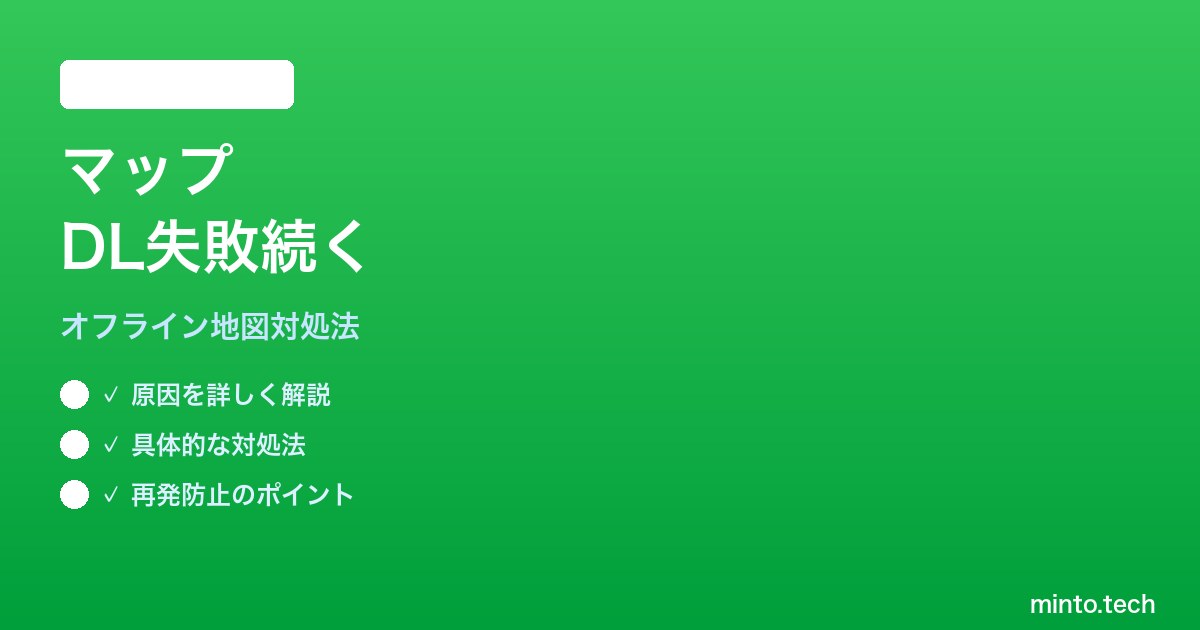 特定のiOSバージョンやマップアプリのバグにより、ダウンロードプロセスが正常に完了しないことがあります。これはAppleのアップデートで修正されることが多いです。