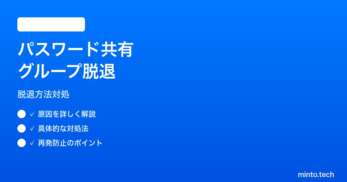 画面下部にある赤い文字の「グループから離れる」をタップします。確認ダイアログが「グループから離れますか?」と表示されますので、内容を読んで再度「離れる」を選択します。これで脱退完了です。グループ名は自分のパスワードAppから消え、共有されていたアイテムも同時に削除されます。