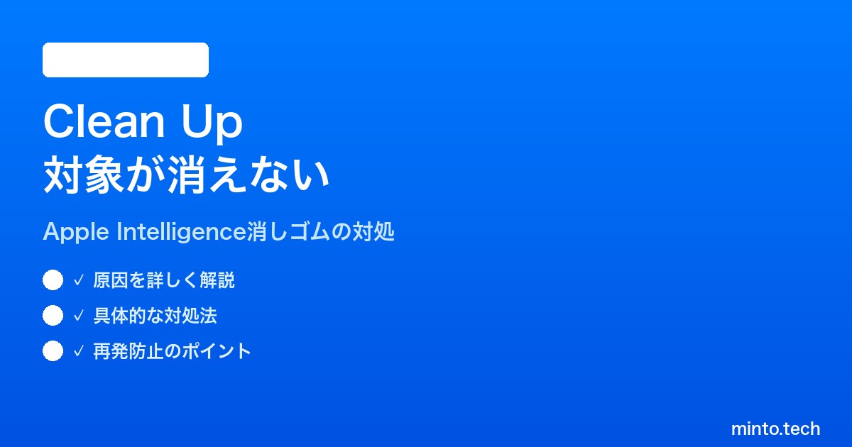 それでも消えない場合は、対象オブジェクトの大きさ・背景の複雑さといったAIが苦手とする要因を疑い、領域分割・再生成・保護領域指定などの応用テクニックを駆使してください。Apple Intelligenceは継続的に改善されているため、iOSをこまめに最新版へ更新するだけでも精度が向上します。