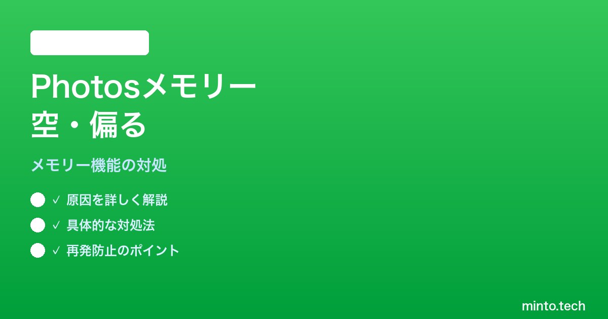 iPhoneのメモリーがパーソナライズされず空になる場合、最大の原因は「ピープルの名前付け不足」と「位置情報メタデータの欠落」です。まずは「ピープルとペット」アルバムで家族・友人・ペットに名前を付け、主要な人には「よく表示」設定を適用しましょう。次に、スクリーンショットやSNS保存の写真に位置情報を手動で補完し、メモリー提案・Siri連携・ストレージ空き容量を整えれば、iOS 26のメモリーは劇的にパーソナライズ化されます。