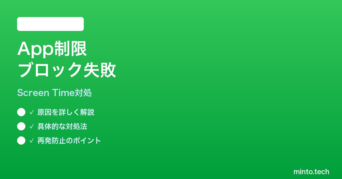 iOS 26のiPhoneでスクリーンタイムのApp制限が効かない問題は、設定ミス(「制限終了時にブロック」オフ)、デバイス間共有による集計ラグ、ファミリー共有の権限設定、コンテンツとプライバシーの制限の甘さ、の4つに集約できます。まずは制限設定の編集画面で「制限終了時にブロック」がオンになっているかを確認し、次にデバイス間共有を一旦オフにして単一デバイスでの動作を見てください。