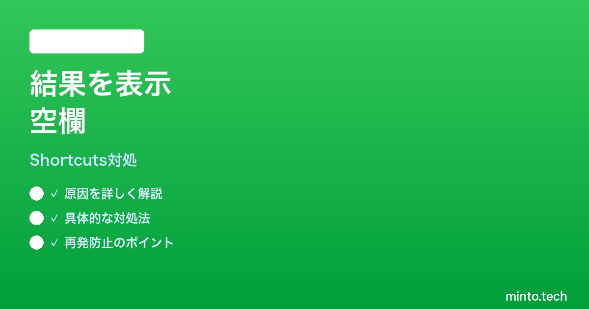 本記事では、「結果を表示」アクションが空欄になる主要な原因を整理し、前のアクションの返り値、変数バインド、テスト実行、ショートカットの再構築、Magic Variableの扱いといった観点から、再現性の高い対処法を完全ガイドします。