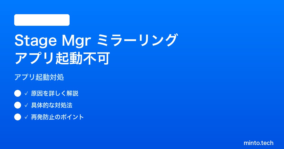 - iPadのStage Manager上でiPhoneミラーリング中にアプリが起動できない主な原因