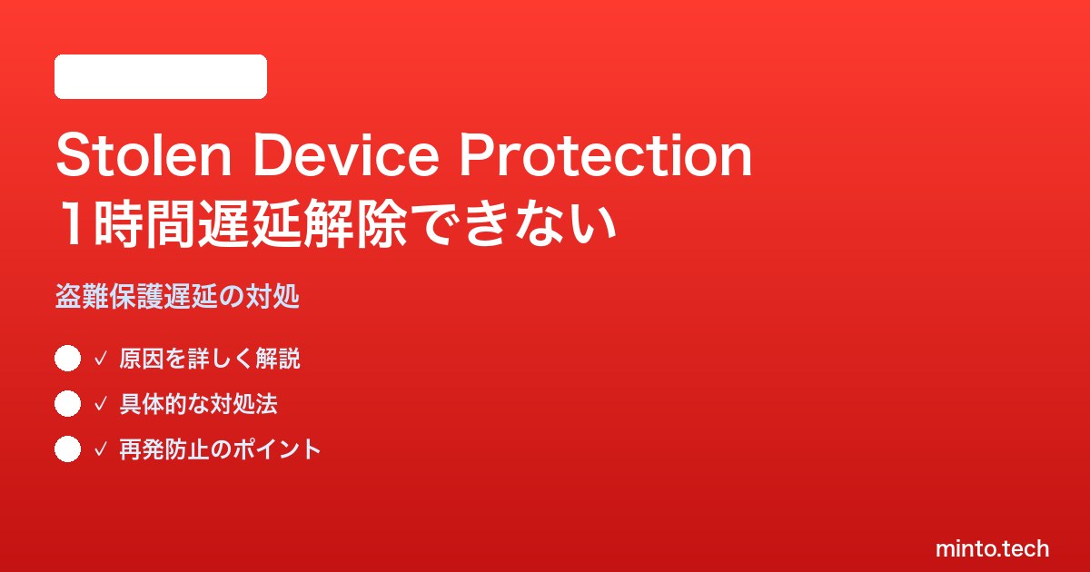 • 盗難デバイス保護(Stolen Device Protection)の仕組みと1時間遅延の発動条件