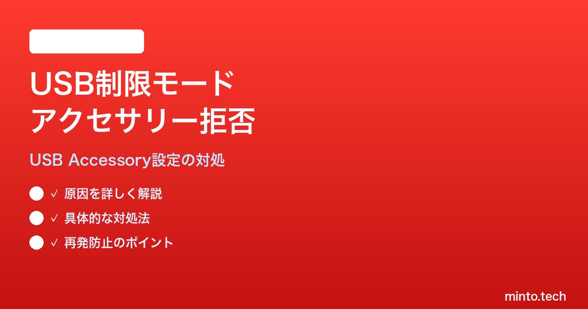 Home / Apple / iPhone / 【2026年最新版】iPhoneのUSB制限モードでアクセサリー接続が拒否される対処法【完全ガイド】