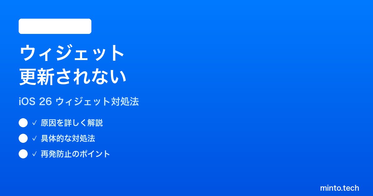 ウィジェットが更新されない原因は一つではなく、バックグラウンドアプリ更新の無効化・省電力モードの干渉・アプリ側の設定ミス・iOS側のキャッシュ不整合など複数の要因が絡み合っています。本記事では、原因の特定から再発防止まで体系的な対処法を解説します。