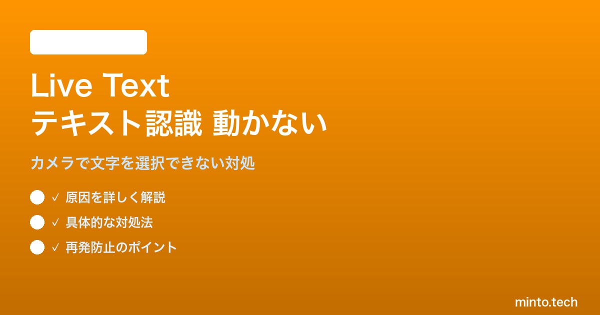 「設定」→「一般」→「言語と地域」→「Live Text」でオン/オフを確認し、認識させたい言語が言語リストに含まれているかも確認してください。カメラでの認識が遅い場合は静止・近づく・明るい環境で撮影する、の3点を意識すると改善されます。
