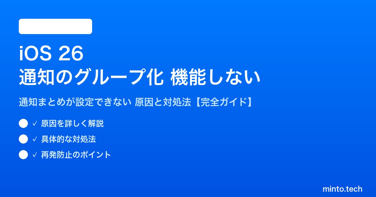 Home / Apple / iPhone / 【2026年最新版】iOS 26の通知のグループ化(通知まとめ)が機能しない・設定できない原因と対処法【完全ガイド】
