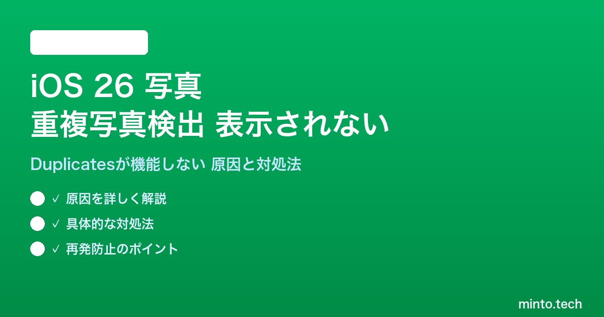 【2026年最新版】iOS 26の写真アプリの重複写真検出(Duplicates)が機能しない・表示されない原因と対処法【完全ガイド】