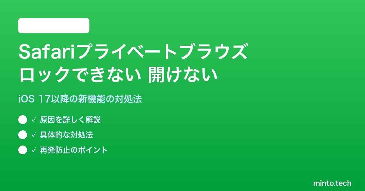 iPhoneのSafariでプライベートブラウズを開こうとしたら「ロックが必要です」と表示されて開けない、あるいはプライベートタブをロックする設定が見つからない、という問題に困っていませんか?iOS 17以降で導入されたプライベートブラウズのFace ID / Touch IDロック機能は便利な一方、設定が複雑で動作しないケースが多く報告されています。本記事では、Safariプライベートブラウズがロックできない・開けないときの原因と対処法をわかりやすく解説します。