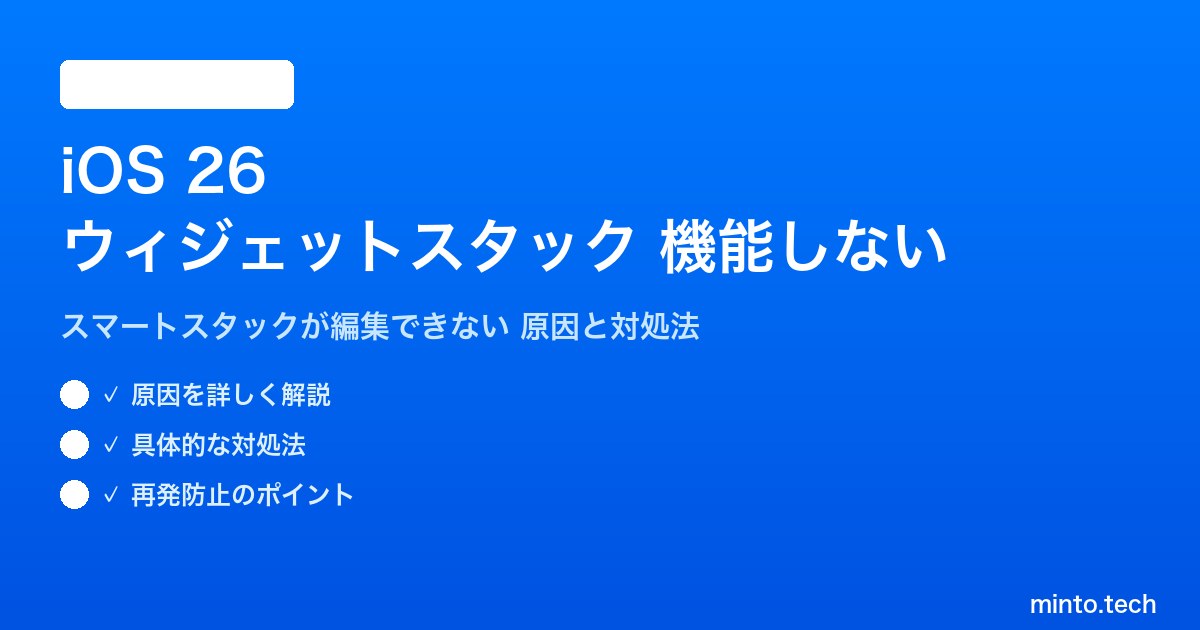 iOS 26のウィジェットスタック(スマートスタック)が機能しない問題は、ほとんどの場合以下のいずれかが原因です。