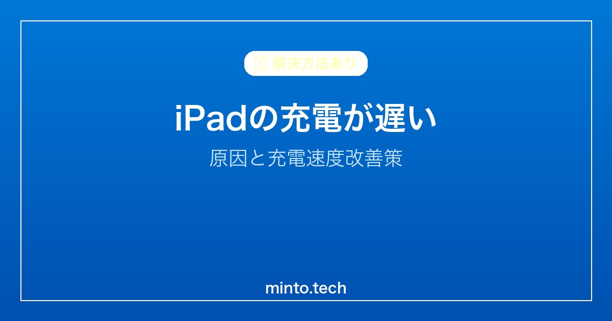 iPadの充電が遅い問題は、充電アダプターの出力不足が最多原因です。iPadには最低20W以上のUSB-C充電器を使うことで大幅に改善します。ケーブルの品質確認と充電ポートの清掃も合わせて行ってみてください。